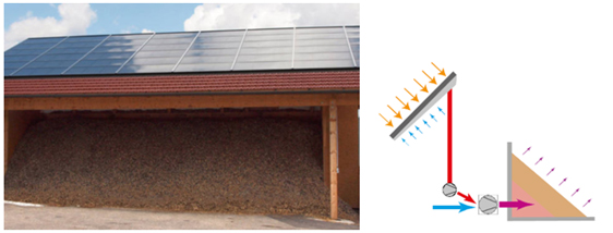 Ekologicznym i tanim sposobem suszenia biomasy są kontenerowe suszarnie wykorzystujące powietrzne kolektory solarne wraz z zasilającymi je panelami fotowoltaicznymi.