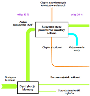 W zależności od lokalnych warunków operator systemu podejmuje decyzję, czy mamy nadwyżkę ciepła z CHP i wykorzystujemy to ciepło do suszenia, czy wymagana jest większa ilość ciepła i trzeba uwzględnić ciepło z kotła.