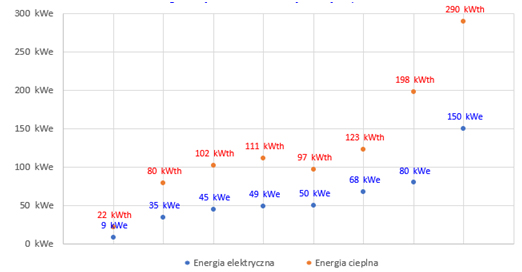 Dla małych mocy dysponujemy następującymi zestawami kogeneracji: